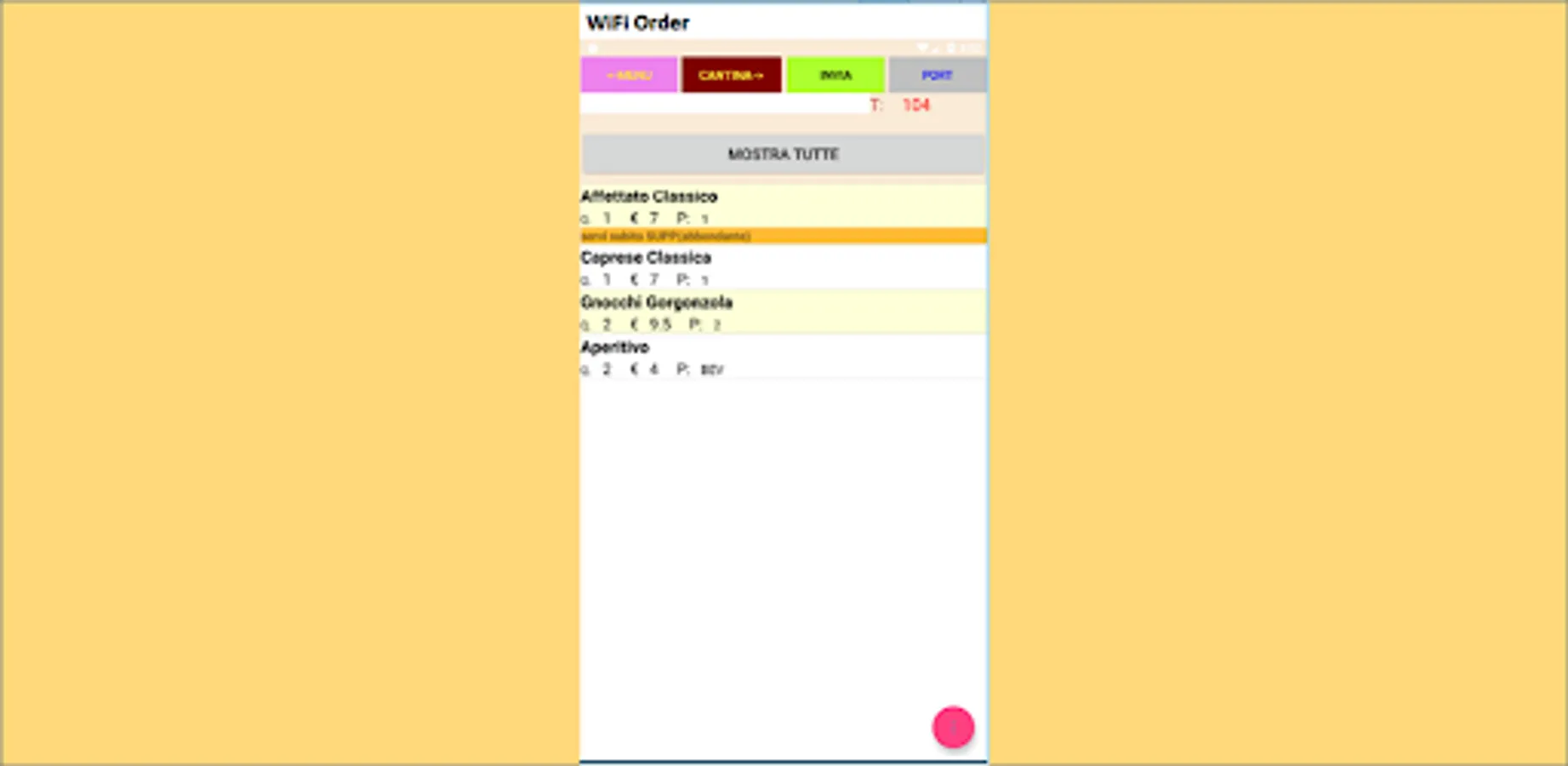 WiFi Order since 2003 is the mobile extension of RistorTouch. Thanks to it you will move freely between the tables and the rooms, you will comfortably manage the orders, saving time and no more forgetfulness. The ease of use will amaze you. You can be productive with just 10 minutes (real cases) of practice (even for complex orders).