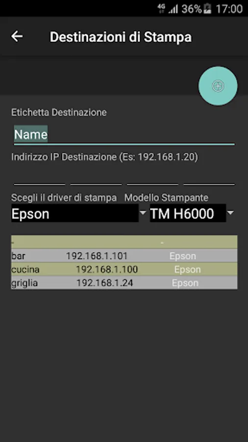 Customize printing destinations (supports multiple contemporary destinations such as kitchen, bar, grid, etc. in a fully automatic way) for the command, for the following amount and for account.