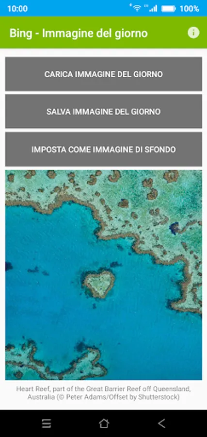 The application shows the background of the day proposed by Bing and allows you to save it and / or set it as a background image with a few clicks.