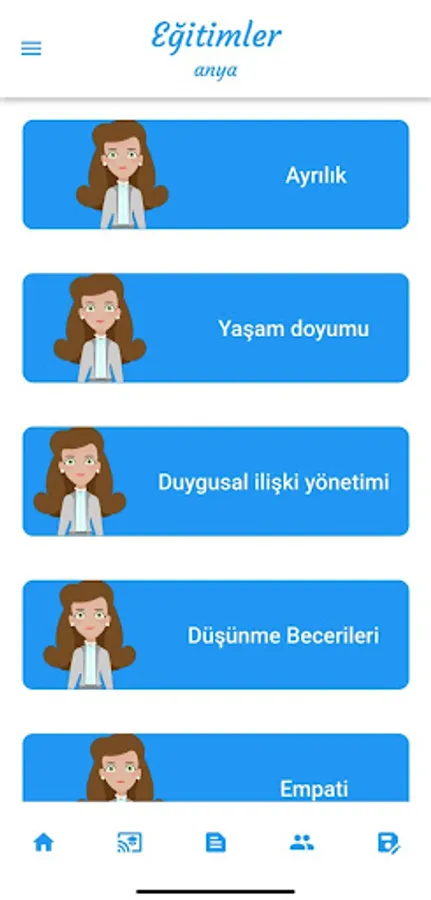 Anya presents you with a test, identifies your problem and directs you to the relevant training. You can solve your problems by strengthening your life skills with education.