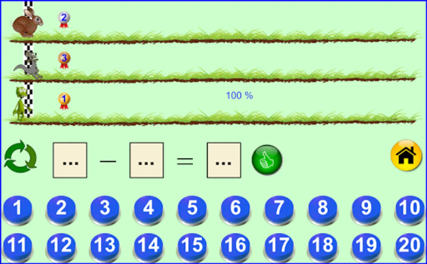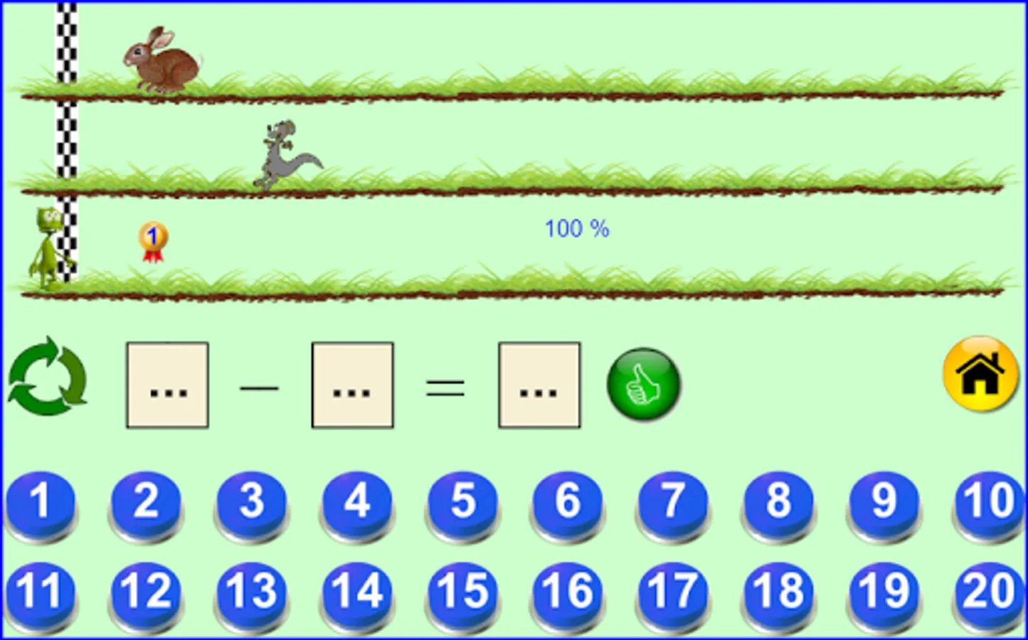 Practicing the additions and subtractions to 20. There are 2 types of exercises. A. addition and deduction schedule. B. addition and subtraction (game form).