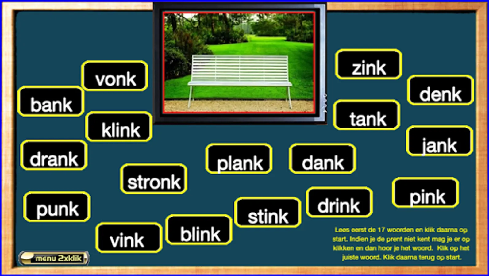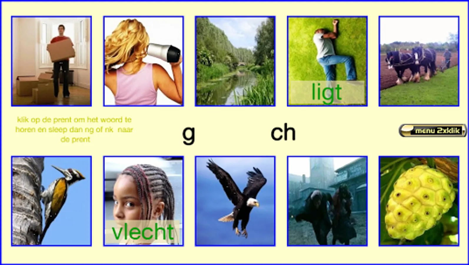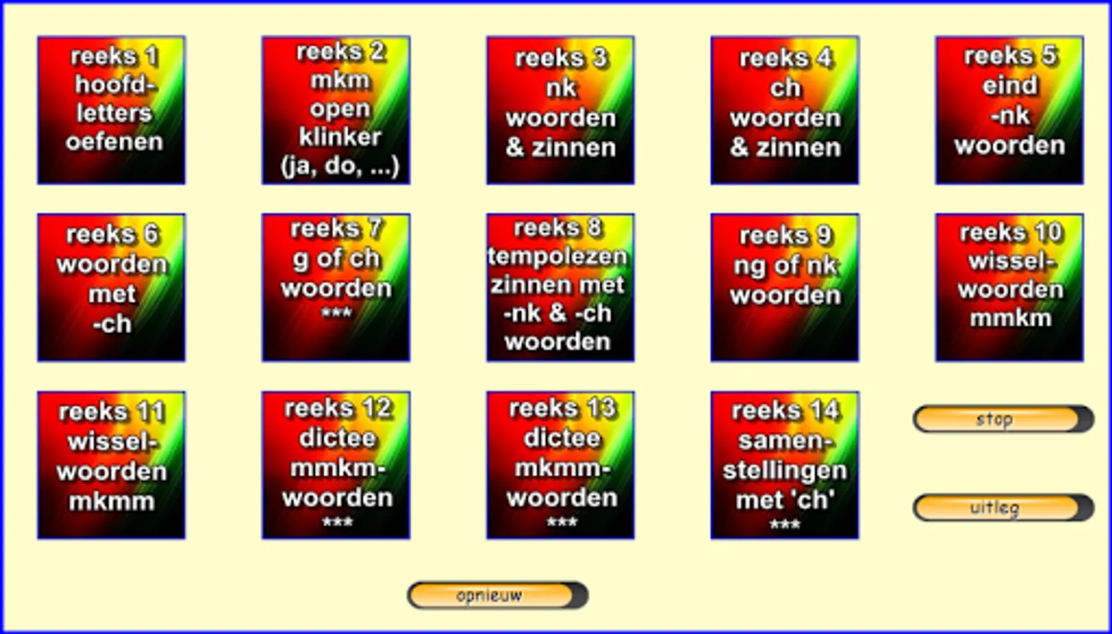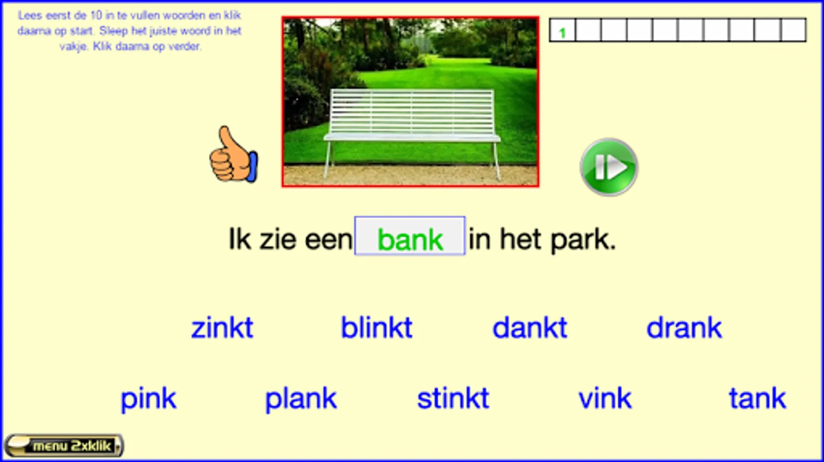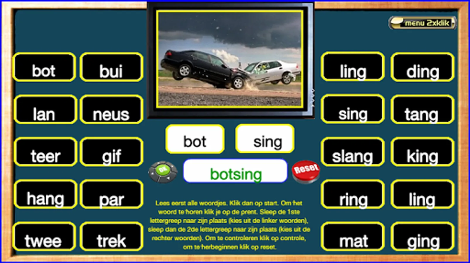 This series of exercises follow the reading method safely learn to read of publishing Zwijsen (a widely used reading method in Belgium and the Netherlands). The exercises follow the lunar 2nd version and the version horizon. In this core 8 teach your child words with two consonants in front (like "tap") and rear (as 'mast'), the end-nk sound (such as tank, thanks) -ch sound (such as laughs), compounds such as "Army Knife" and words such as 'yes, va ...'. I made these exercises relying on my 25 years experience as a teacher 1st grade. Most exercises are supported both visually and aurally. The exercises are marked with "***" are more difficult. Headphones make the sound even better. Works best on tablets. Not suitable for smartphones. Billiau Danny.