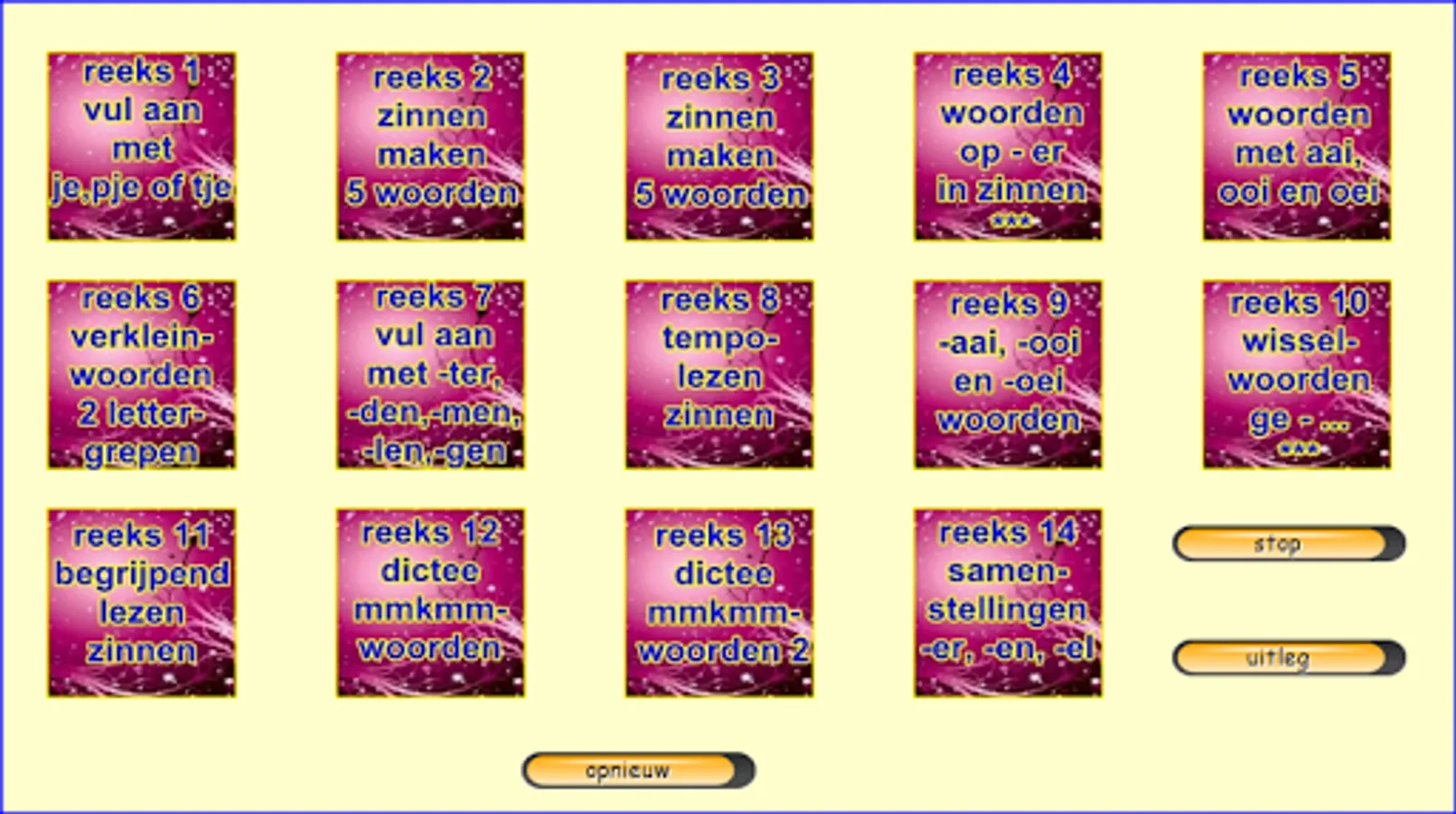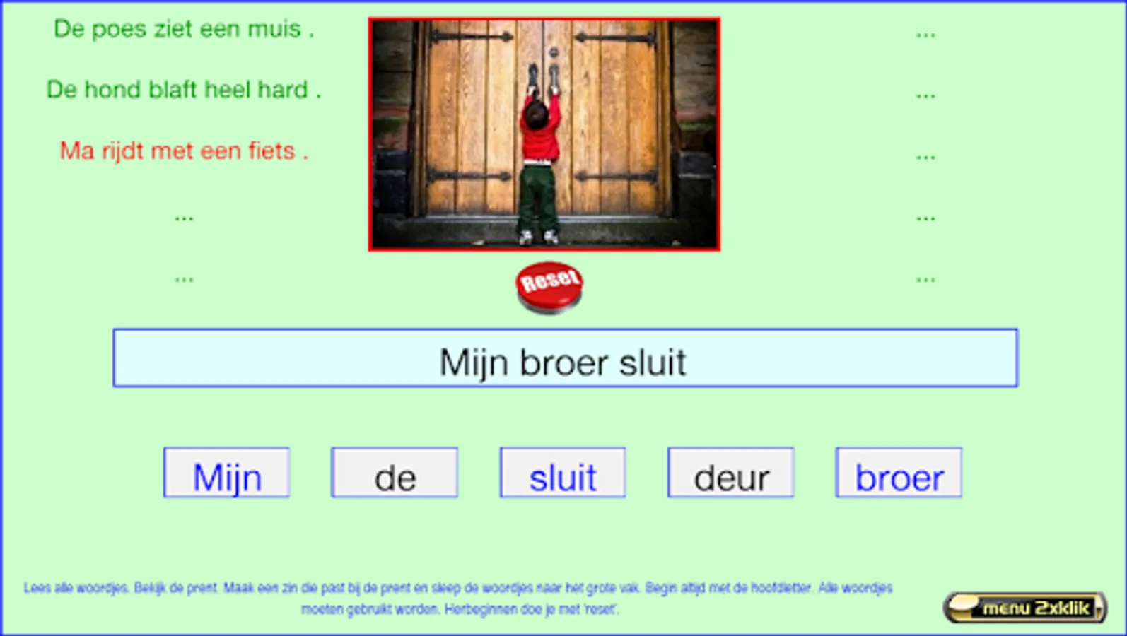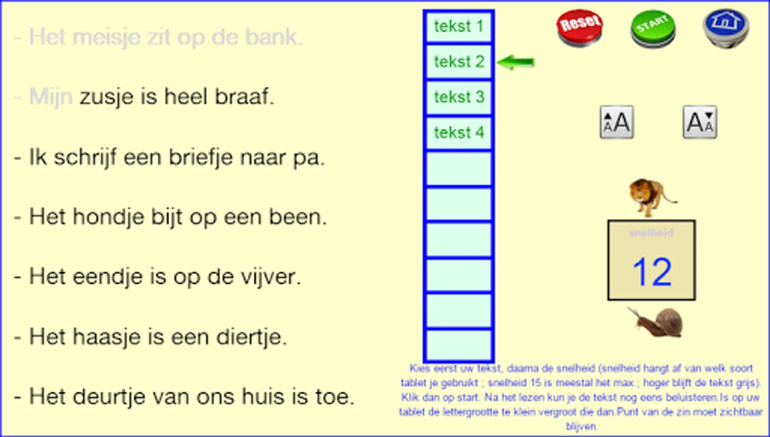 This series of exercises follow the reading method safely learn to read of publishing Zwijsen (a widely used reading method in Belgium and the Netherlands). The exercises follow the lunar 2nd version and the version horizon. This core 9 teach your child words with two consonants in front and back (such as newspaper), the sounds cuddle, -ewe and oops (like cutting cage, rowing), two-syllable words like "pond, bakery ..." and words that begin with "working be built, GE '. I made these exercises relying on my 25 years experience as a teacher 1st grade. Most exercises are supported both visually and aurally. The exercises are marked with "***" are more difficult. Most exercises are supported both visually and aurally. Headphones make the sound even better. Works best on tablets. Billiau Danny.