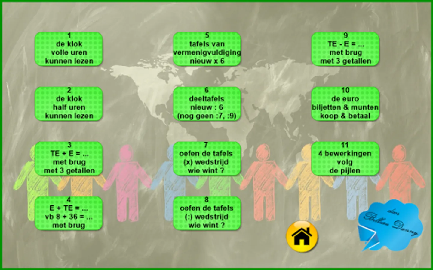 My name is Danny Billiau. I myself am a retired teacher in 1st grade GO Klim-Op Vilvoorde. Was there ICT coordinator. For 30 years, I use computers in the classroom. I started with a Commodore 64. These exercises (math, language and spelling) are suitable for students in 2nd grade / group 4. Use round during April. This is the 8th part of this year.