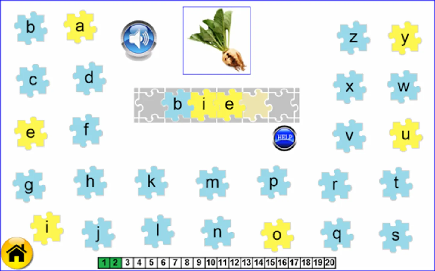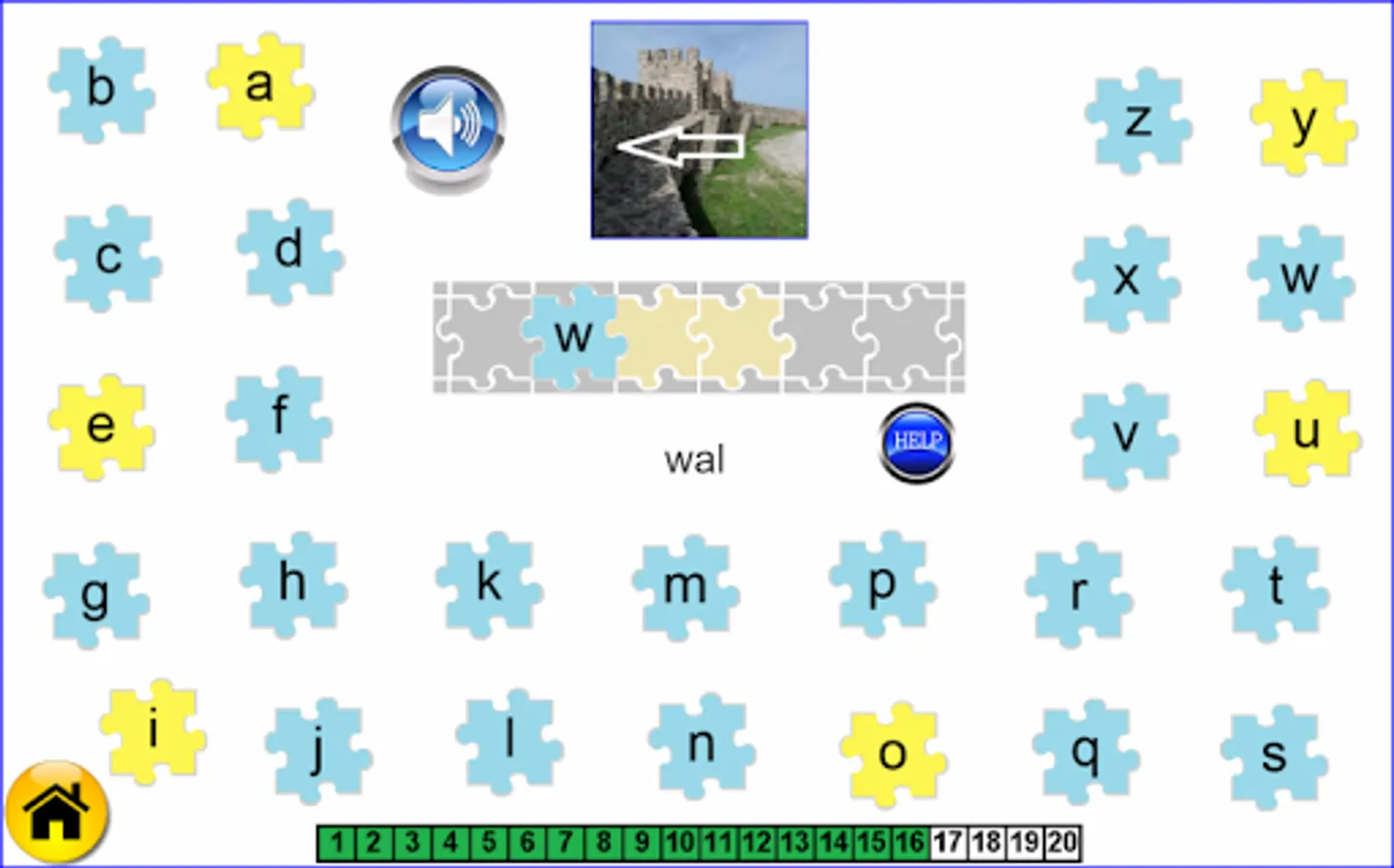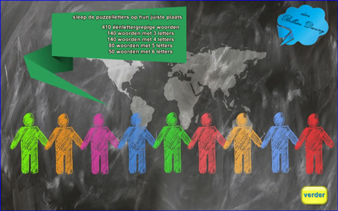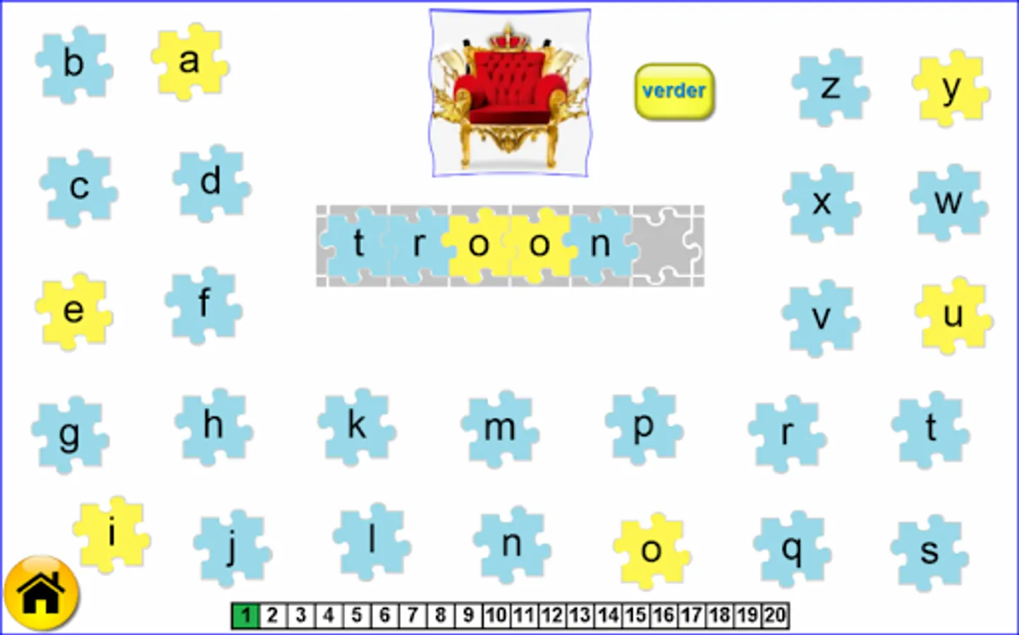 This new version of the letter layer is intended primarily for beginning readers who know all the letters (about January). Complete new layout. This application contains 410 words of one syllable of which 140 with 3 letters, 140 with 4 characters, 80 letters and 50 by 5 by 6 letters. Each word is supported visually and aurally. Words are formed by loose pieces of the puzzle. Each exercise consists of 20 words that are chosen randomly from the available words.