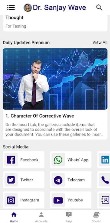 Dr. Sanjay Wave have come up with a unique NEO Wave methodology to Daily and Intra-day Nifty & Bank Nifty Analysis. Dr. Sanjay's NEO Wave analysis and experiential views about the current market scenario. It covers stock selection, Starting point (SL), End point and entry. Meant primarily for beginners, small investors, intra-day traders, and for students of technical analysis as well as HNIs and Fund Managers who need to understand latest technical Analysis of the market, as explained daily by Dr. Sanjay Sinha. We believe in analysis and strategy which results in safe and steady wealth creation at your ease..