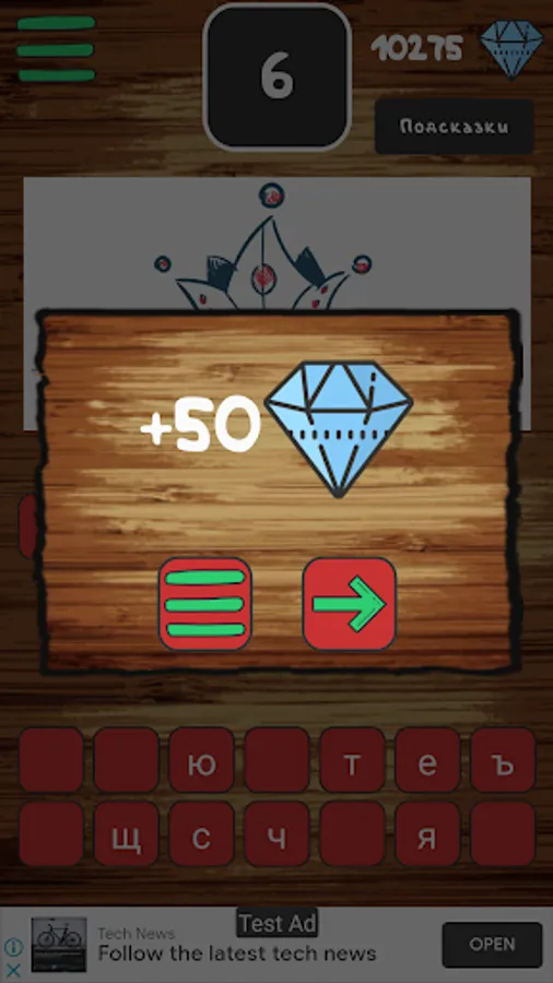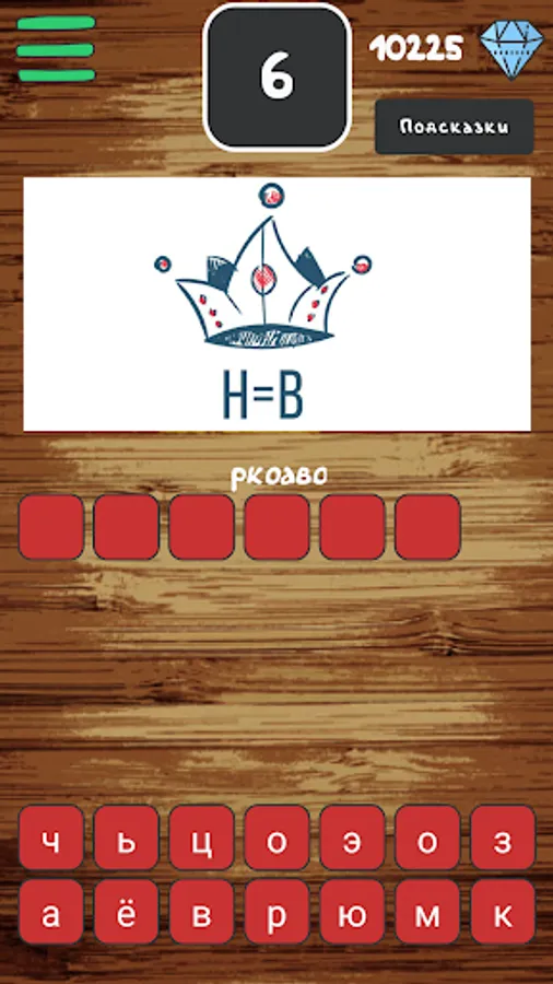 For each guessed puzzle in the game, diamonds are given. The earned diamantics will be useful to you if you can't figure out the encrypted word. For a certain amount of diamonds you can:
