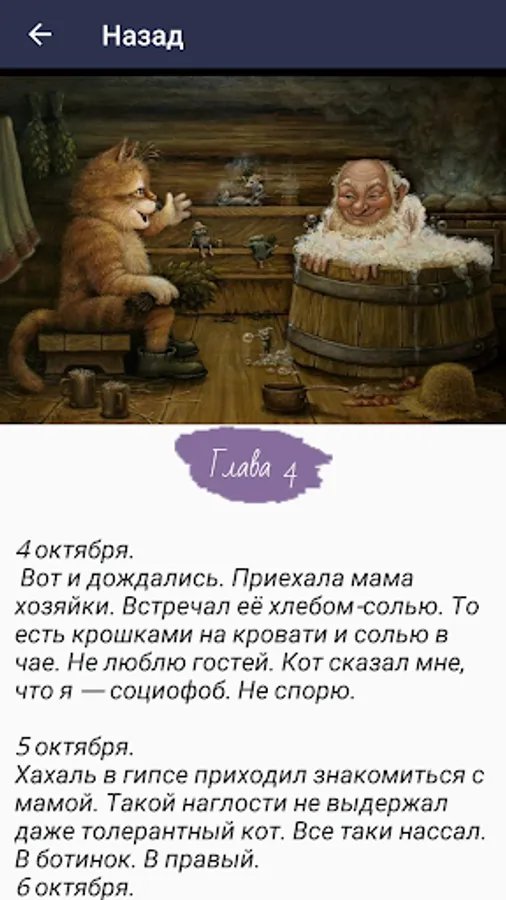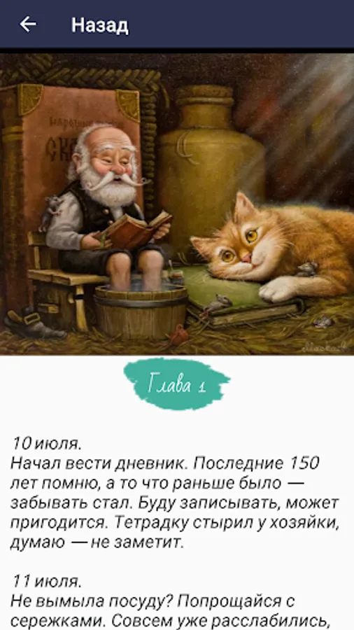 Brownie decided to keep a diary and record the events of each day, a personal diary. As a friend, Domovoy walks a domestic cat, which he occasionally substitutes with the hostess. Solid pearls - in each diary entry.