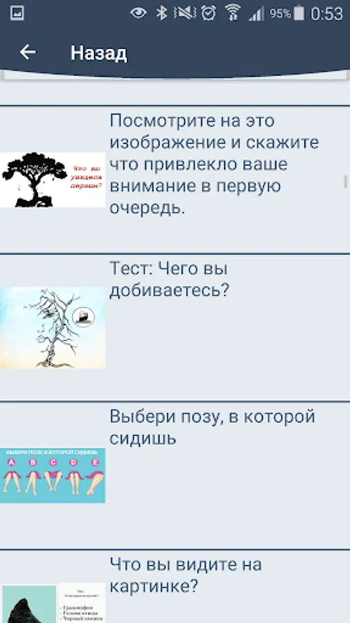 Passing interesting tests in pictures, you can not only have fun, but also learn about your secret desires. Spend a couple of minutes performing the best psycho-psychological tests and determine your true needs at the moment.
