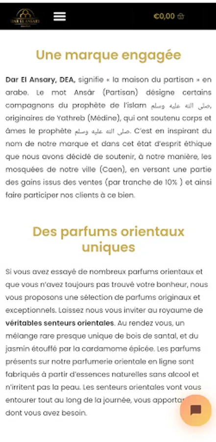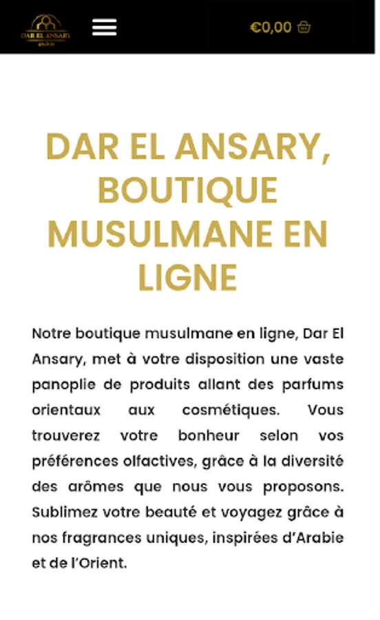 Our Muslim online store, Dar El Ansary, offers a wide range of products ranging from oriental perfumes to cosmetics. You will find your happiness according to your olfactory preferences, thanks to the diversity of aromas that we offer you. Enhance your beauty and travel with our unique fragrances, inspired by Arabia and the East.