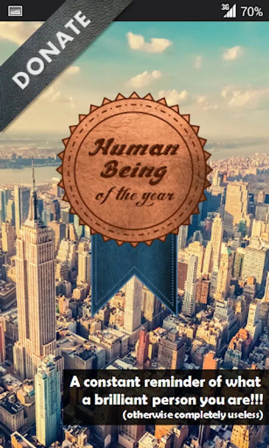 The donate version of the app includes a vanity widget, the Human Being of the Year badge.