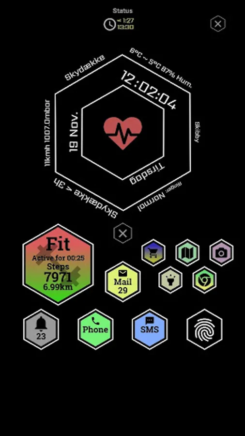 Darcle is my most complex theme so far, most of the functionality in KLWP is used, and twisted for the darcle purpose.