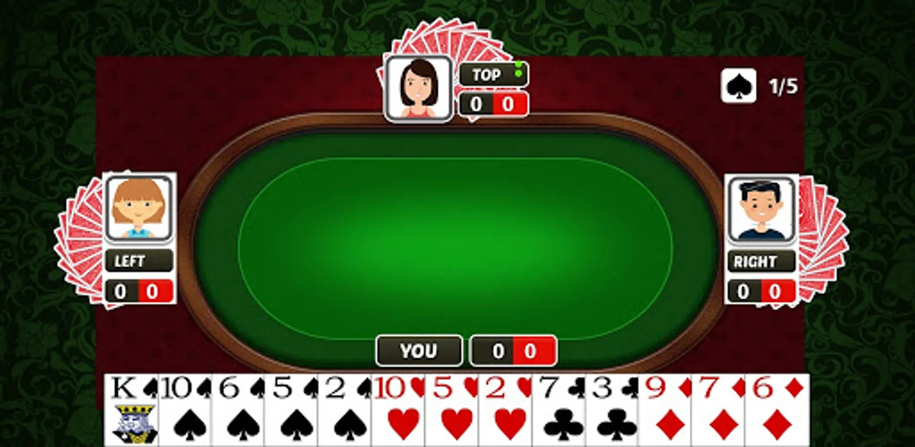 basically hazari is a game in which all card is distributed between four players and there is one colour set ,now user has to make 1000 points first to win the game