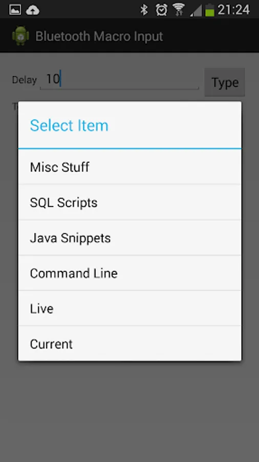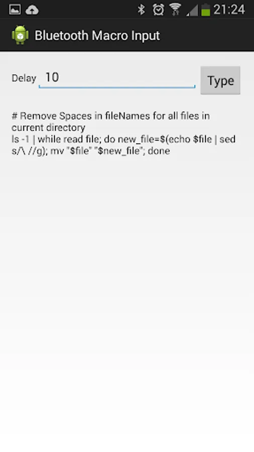 See http://www.darkmidnight.co.uk/2014/05/android-app-bluetooth-macro-input_22.html for details.