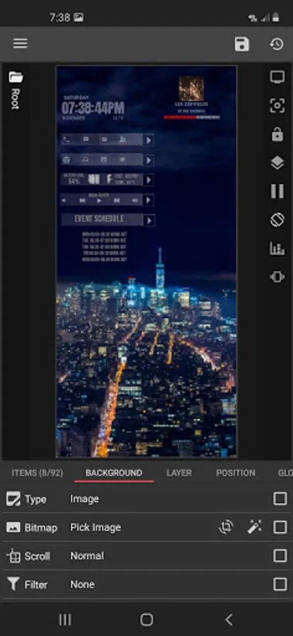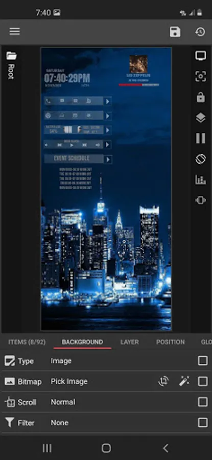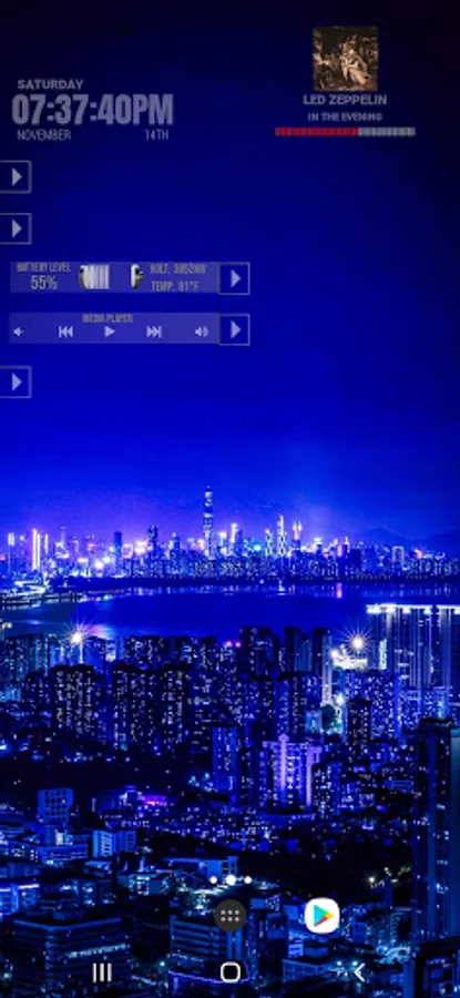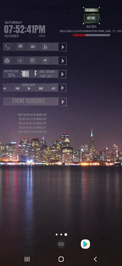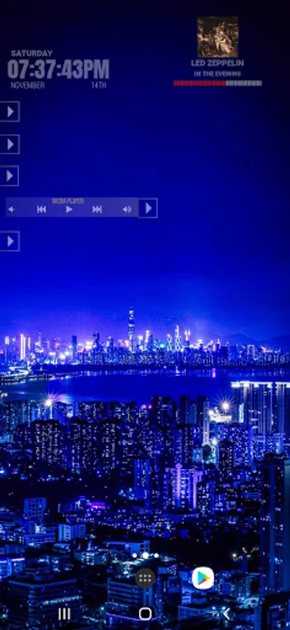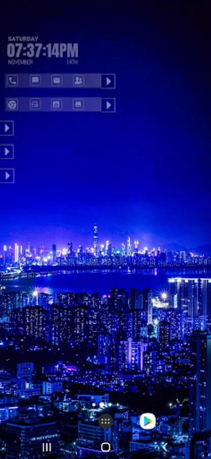 Four breathtaking background themes of beautiful cities at night. This theme uses buttons, that when pressed, will slide out a drawer with different functions and applications.
