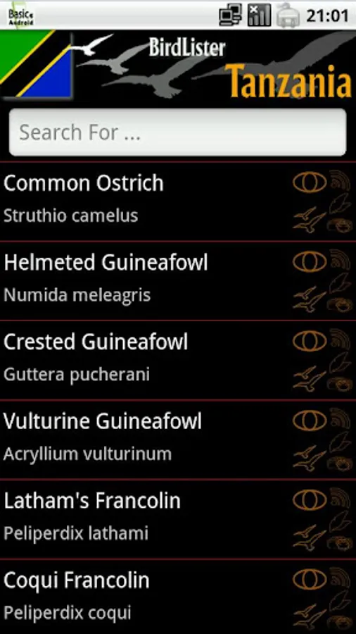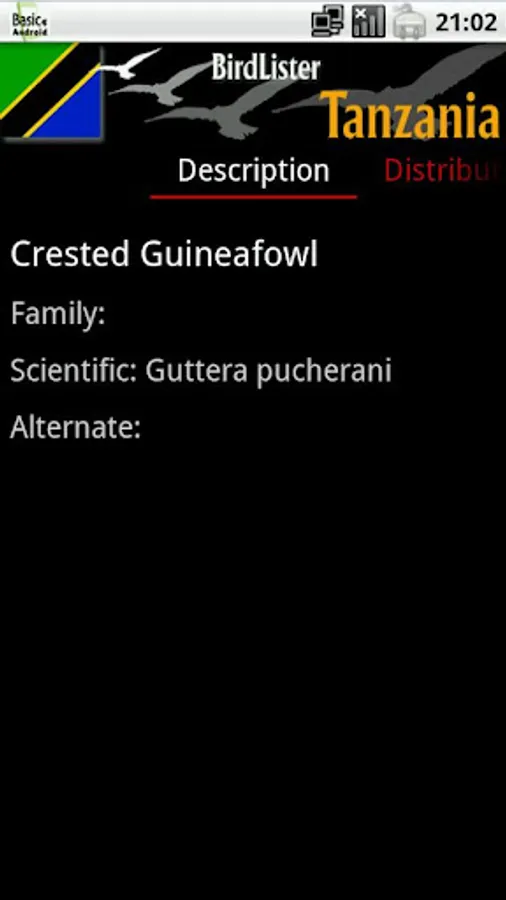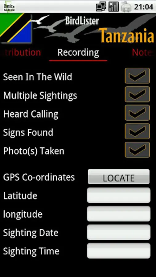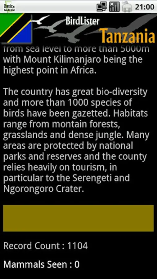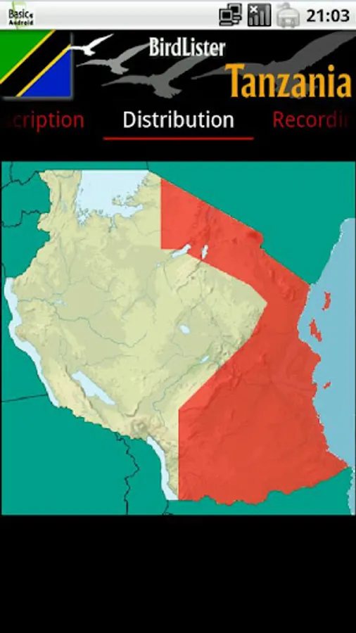 BirdLister Tanzania is a comprehensive bird list manager for the 1104 species of Tanzania. It includes distribution maps and multiple recording options for managing your bird list.