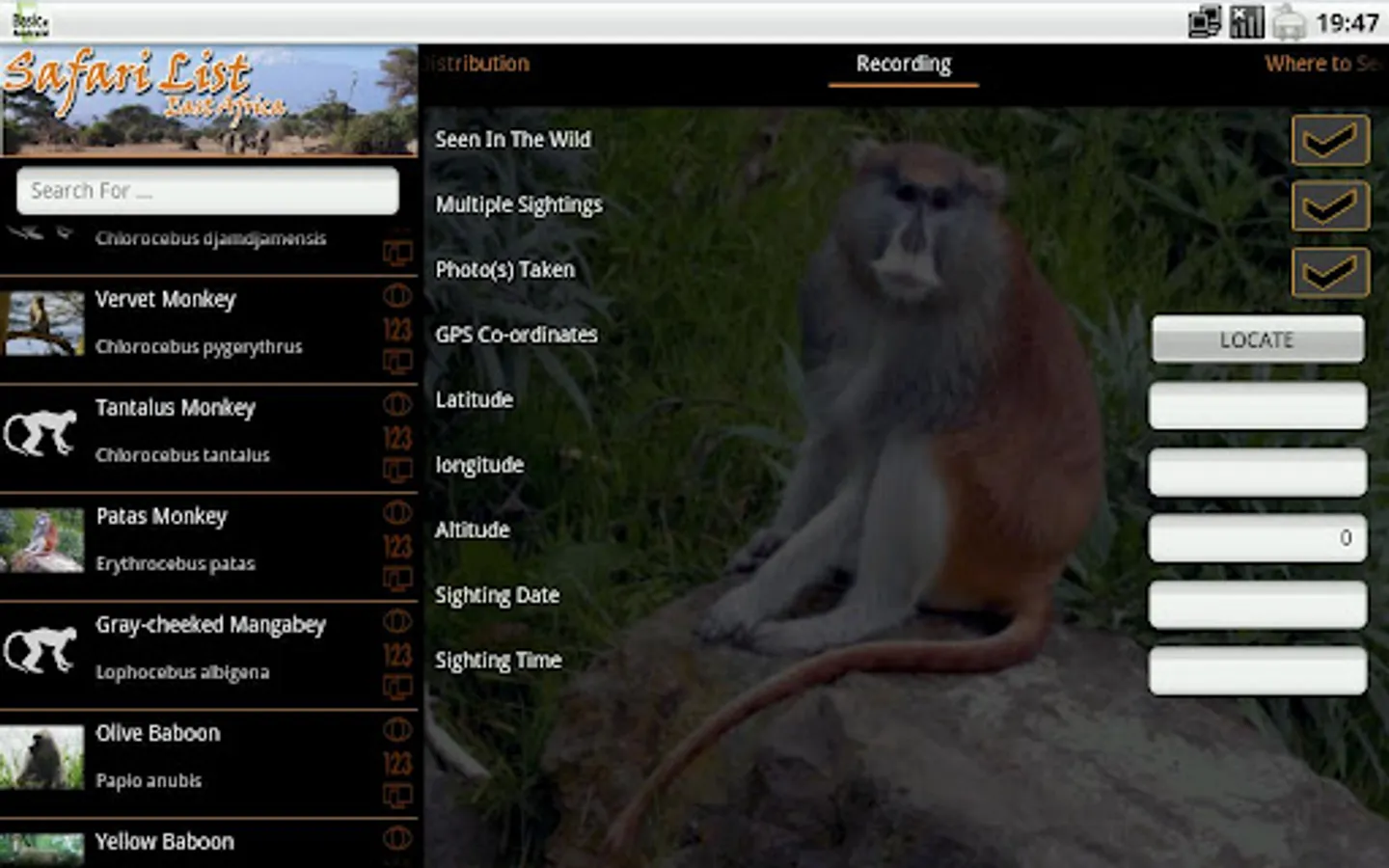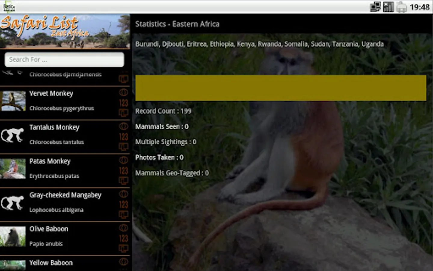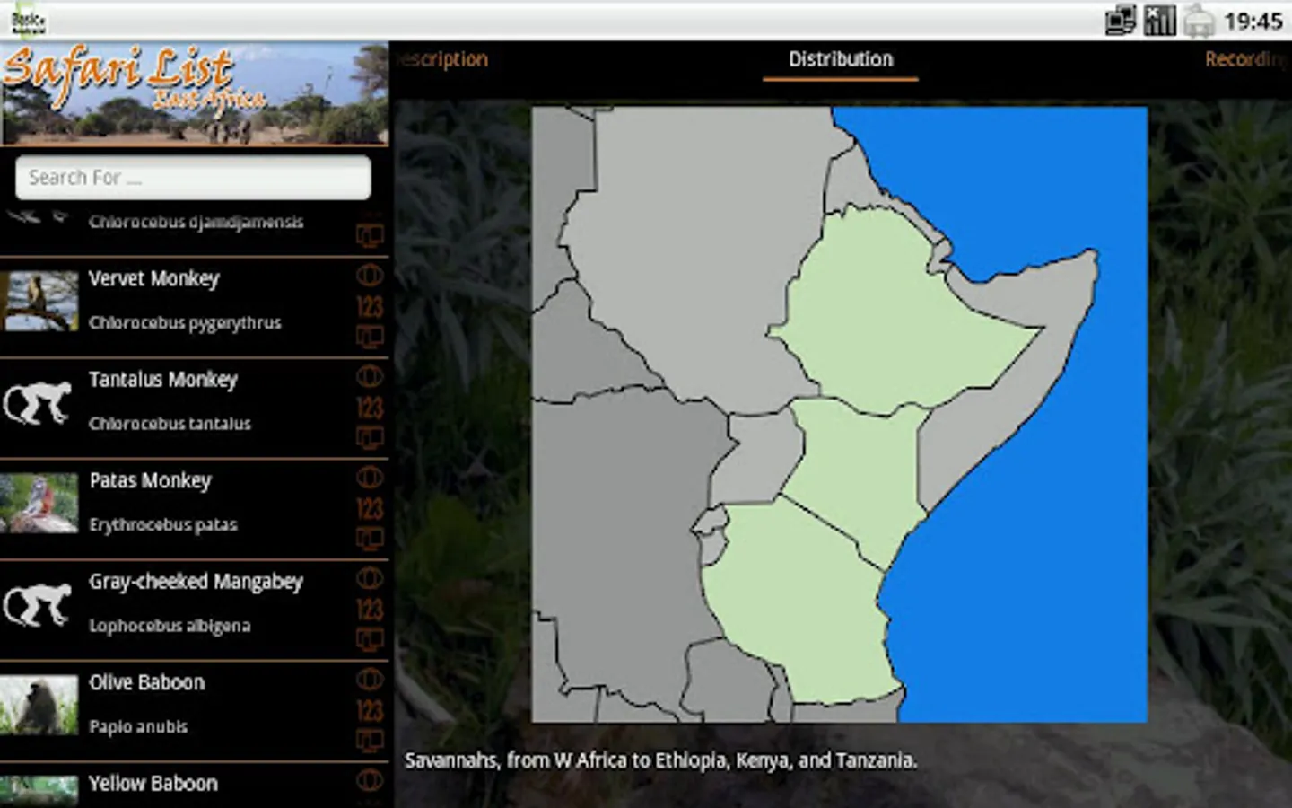 Covering countries from Uganda to Somalia, Sudan to Tanzania, this app allows you to find and identify mammals, record sightings, log GPS locations and take notes.