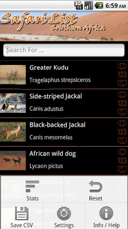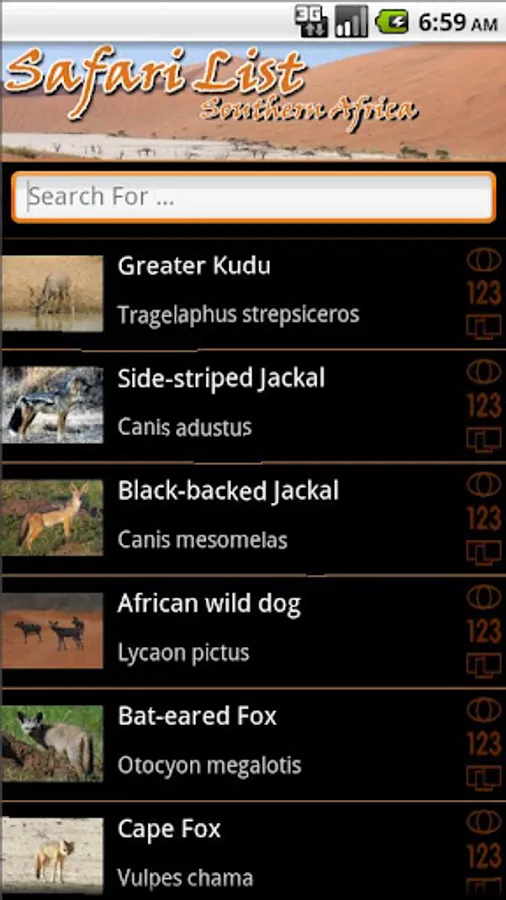 With details on 140 common mammals found in Southern Africa, Safari List offers more than 100 photos and detailed descriptions to help identify mammals commonly seen on Safari.