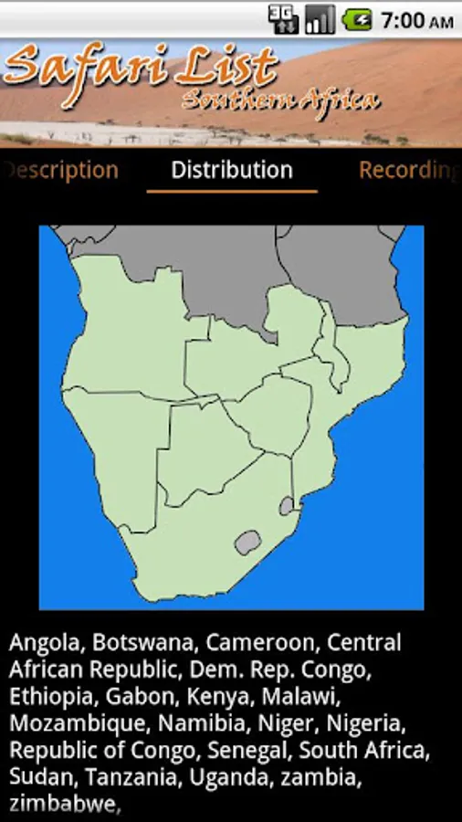 Covering countries from Angola and Zambia south to South Africa, this app allows you to find and identify mammals, record sightings, log GPS locations and take notes.