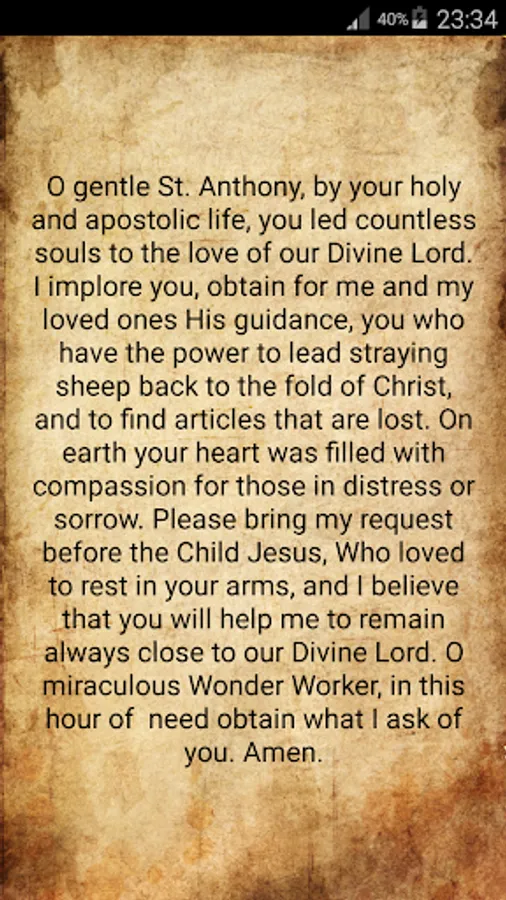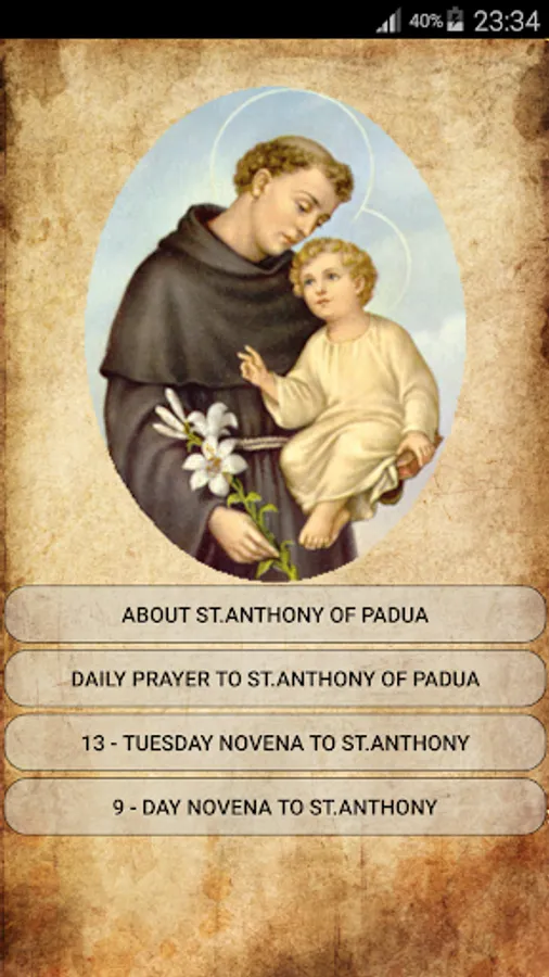This app provides you with information about Saint Anthony of Padua. The app also contains the Daily Prayer, 13 - Wednesday Novena Prayer and 9 - Day Novena Prayer to Saint Anthony.
