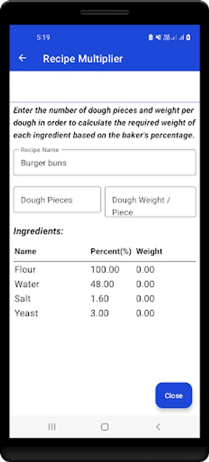 - Convert Baker's Percentage into Weight of Ingredients.