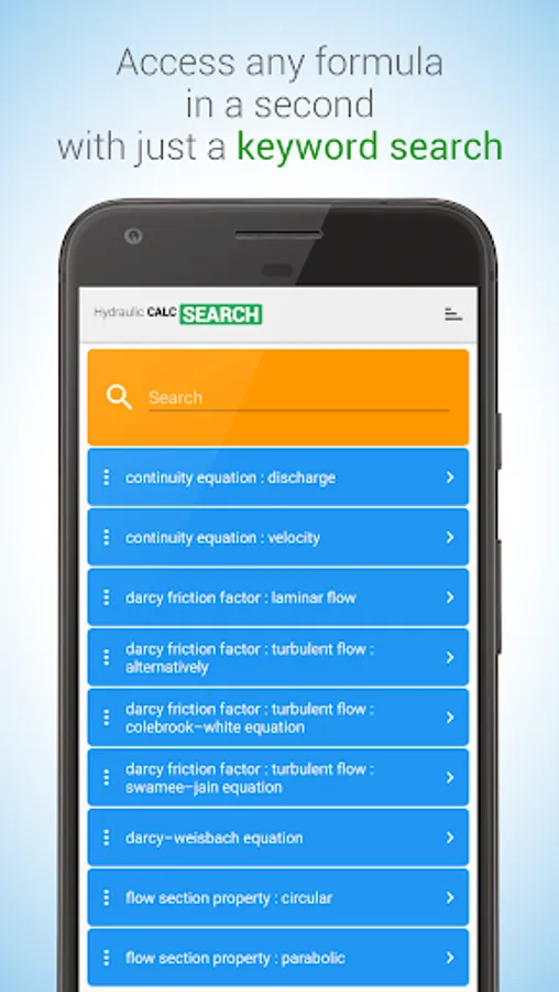This application was developed mainly to provide a swift access to a variety of formulas, theories and coefficients related to hydraulics for civil engineers, especially working in the field of water supply and sewage system.