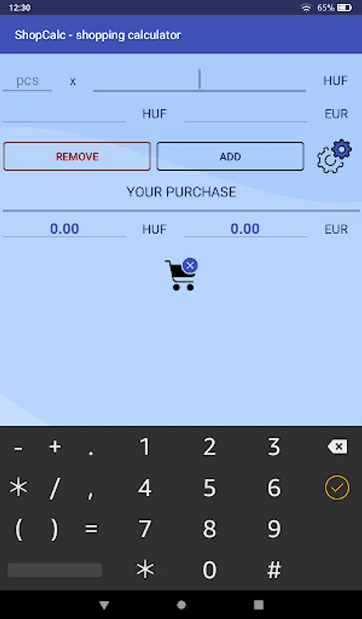 This simple app will not only count the amount of your entire purchase, but also show you the amount in your chosen currency.