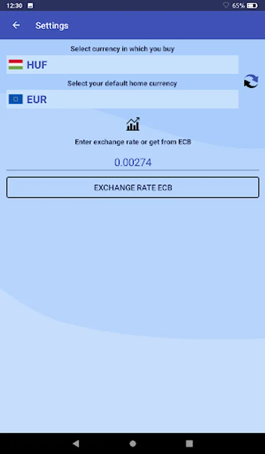 You can enter your own exchange rate or simply press the button to get the current rate from the European Central Bank.