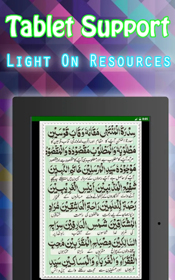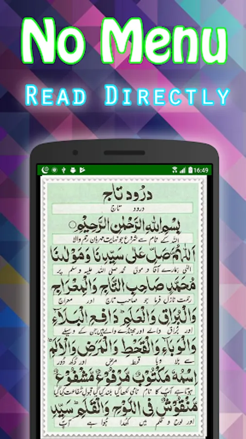 Install this offline Durood-e-Taj with Urdu Translation if you just want to open and read the Arabic Text without any interruptions. Also included is Urdu Meaning (Tarjuma).