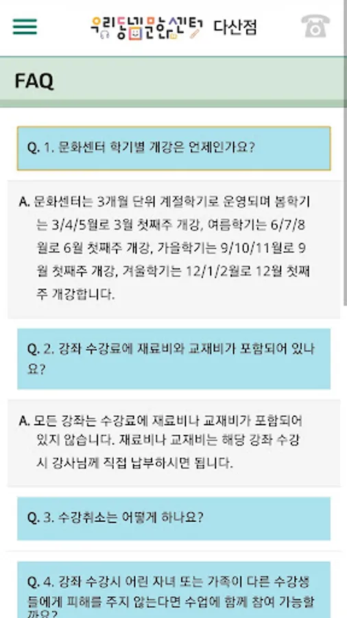 모두가 함께하는 우리동네 교육 커뮤니티 우리동네문화센터 다산점입니다.