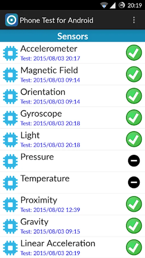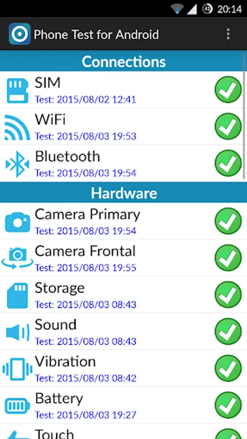 Phone Test for Android allows you to show your phone informations, analyze and test the hardware, sensors and the components into the phone .