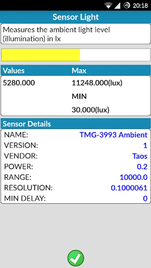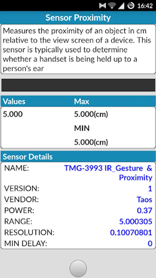 You can know and test the sensors in the device (Accelerometer , Gyroscope , Magnetometer, Proximity sensor, Pressure sensor, Light sensor, Orientation, Temperature, ...)