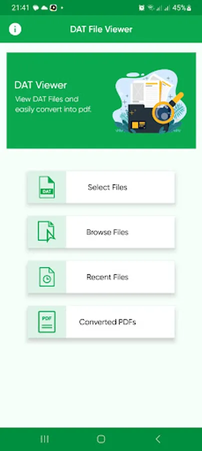 Dat file viewer and opener allows the user to open dat files and can easily convert it into pdf files and share with others..