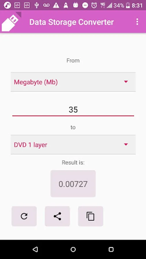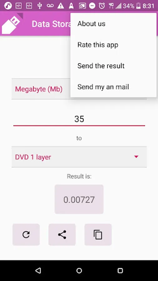 "Data Converter Units",quick and easy App to convert units of data and computation how: bit (bit), byte (B), Kilobyte (Kb), Megabyte (Mb), Gigabyte (Gb), Terabyte (Tb), Zip 100, Zip 250, DVD 2 layer, Blu-ray (2 layer) and more.