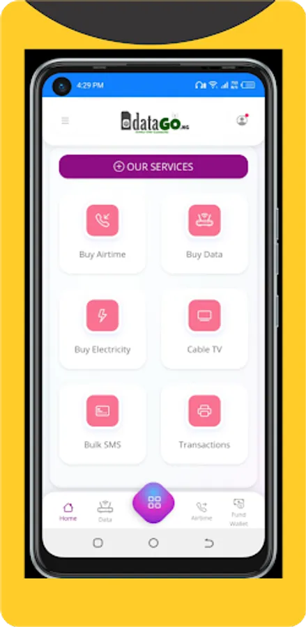 VTU Application that offere Internet Data for all Network, Airtime, Cable Subscription, Electricity Bill Payment, Result Checker and Bulk SMS