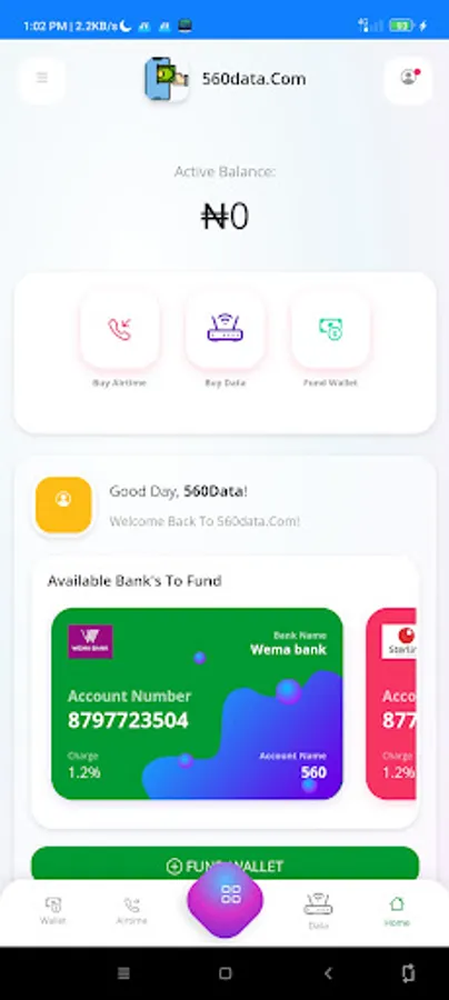 560Data Mobile App Is a platform For selling data, airtime, cable subscription, electric susbcription, airtime to cash etc......