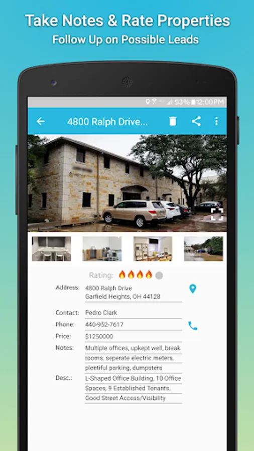 Create a property database with photos & videos, GPS coordinates, addresses, prices, contact information, priority and notes on residential, commercial or industrial properties as well as land. View your saved properties on a map and easily keep your possible future investments organized.