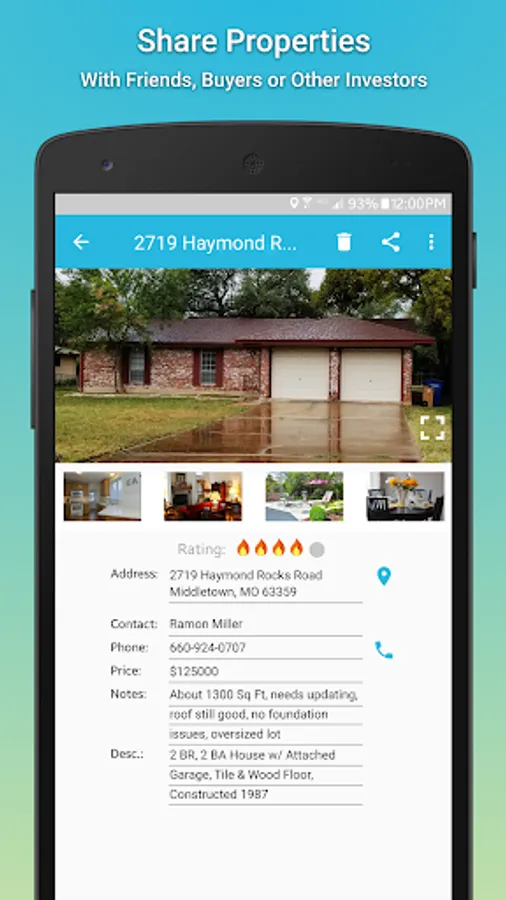 Properties can be easily shared via email or text with friends, potential buyers or fellow investors. You can even choose which information and images will be shared so you aren't giving out any information you would rather keep to yourself.