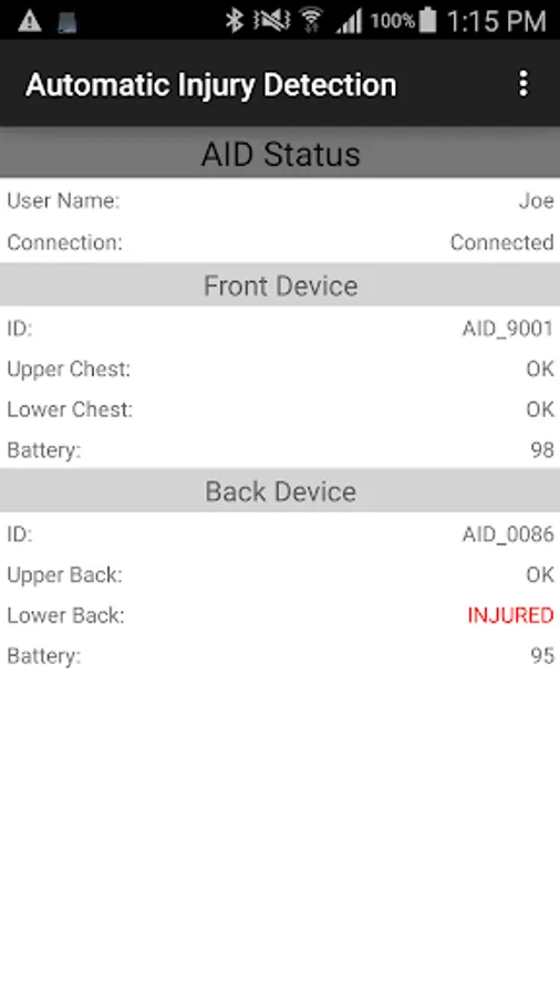 Automatically sends alerts via phone/text message when the AID active sensor panels (made by Select Engineering) have been pierced by a bullet, knife, shrapnel, etc.