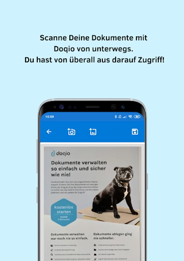 Disordered stacks of paper are a thing of the past. With Doqio, documents are stored in the cloud via smartphone. The data is as secure as the gold in Fort Knox and is available at all times. With automatic content recognition, documents can be found again, even years later.