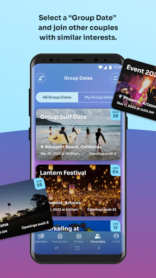 Lastly, we offer “Group Dates” which are pre-planned dates. Find couples with similar interests and join in on the fun together!