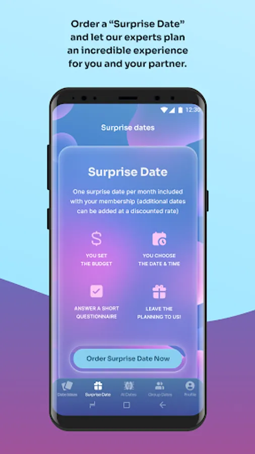 Duo is the first app that plans a complete “Surprise Date” for you and your partner. After a short questionnaire, order a “Surprise Date” and let our experts plan an incredible experience for you. The only information you’ll be given is what to wear and when to be at your first location. The rest is a complete surprise to both of you!