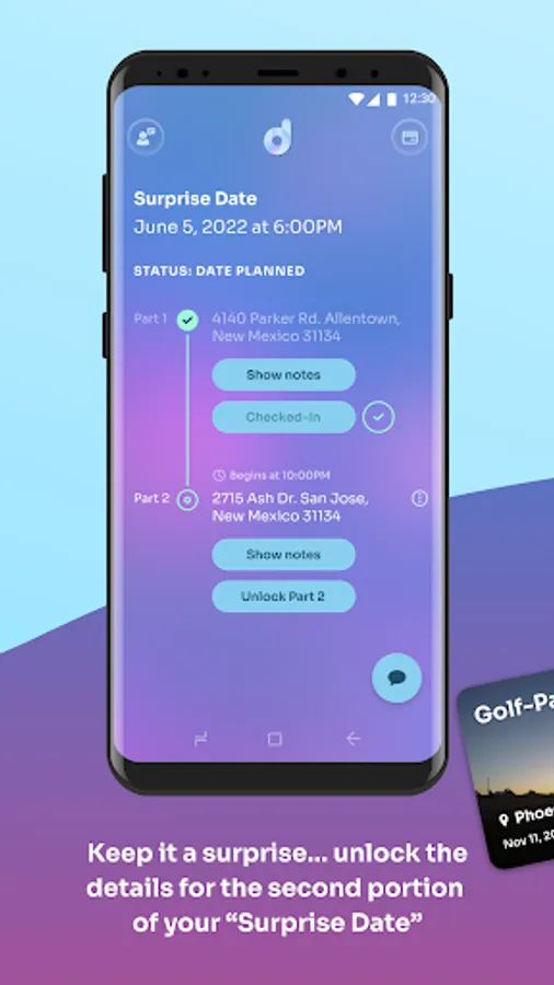 Tired of going on the same date over and over? Order a “Surprise Date”! After a short questionnaire which helps us better understand your preferences we plan an entire date experience for you and your partner. You set the budget! Our date planners will guide you along the way, neither of you will know what’s in store until you arrive! The dates are typically split into two parts. Users will unlock the second part of the date once the first part has been completed.