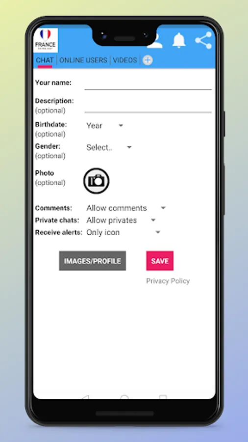 The Sign-up process is very simple. You will have just to enter your name, gender, date of birth, hobbies and write an optional description if you want to. It is recommended to write a description so that other members know what you are looking for.