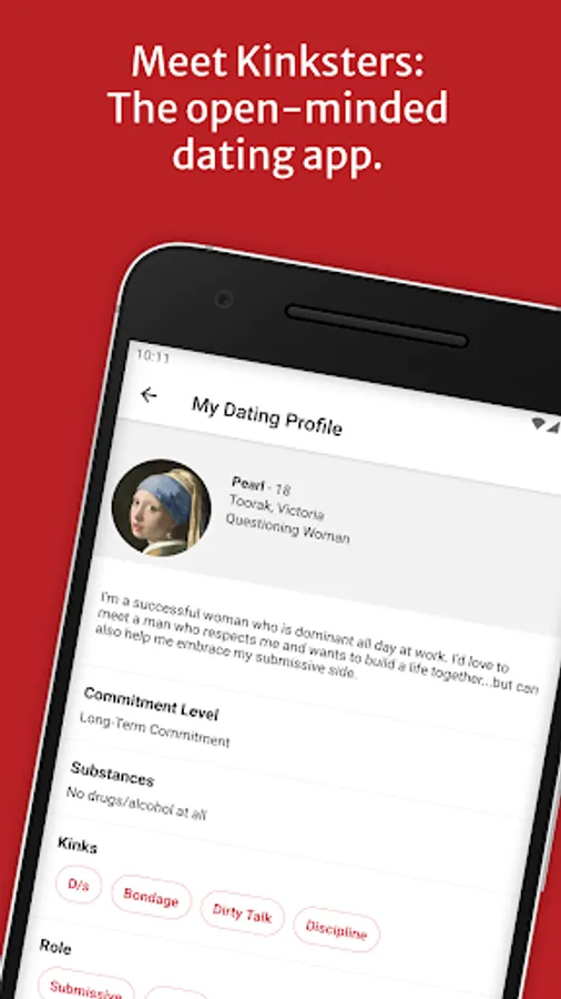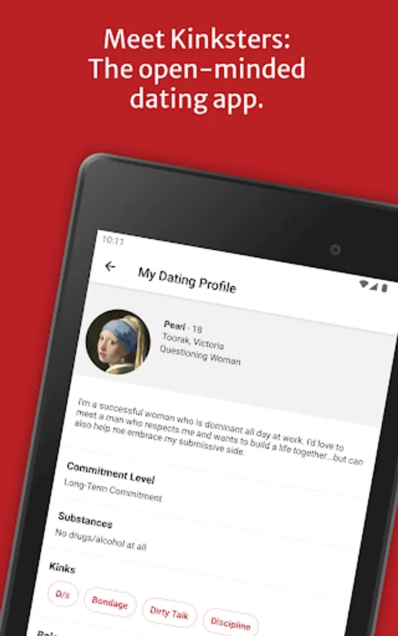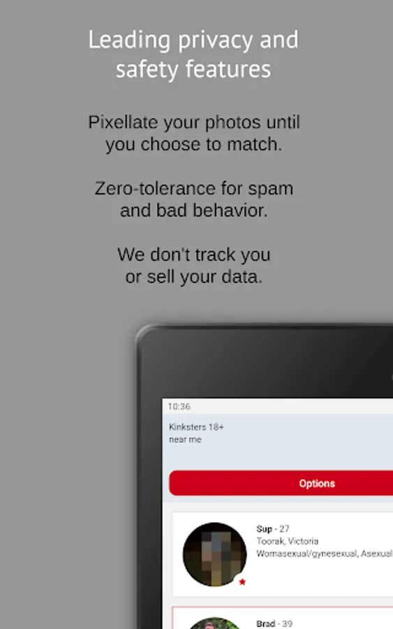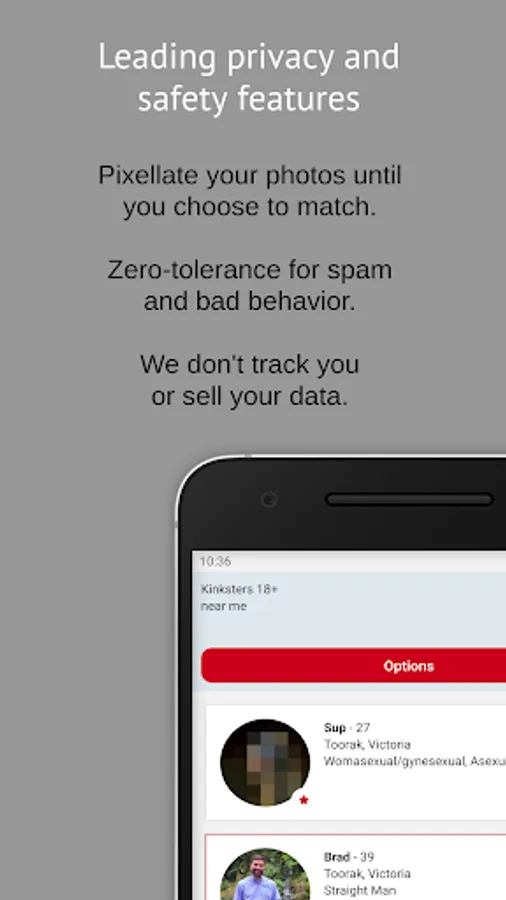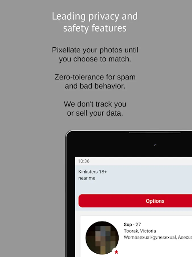 Chat with your matches safely in our app before deciding to meet in public and determine if there’s a connection. We proactively monitor profiles and photos to ensure compliance with our strict community guidelines. Meet Kinksters is committed to a safe online dating experience, particularly for women and femme/femme-presenting people.