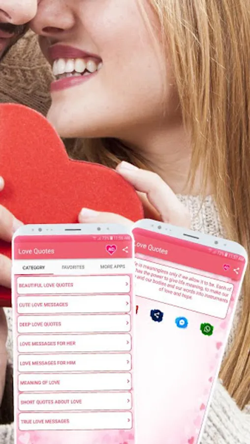 This Love Quotes app helps your boyfriend/girlfriend will feel with you deep and deeper. For you to express yourself into meaningful words. In this Love Quotes, you will find many nice and romantic messages such as
