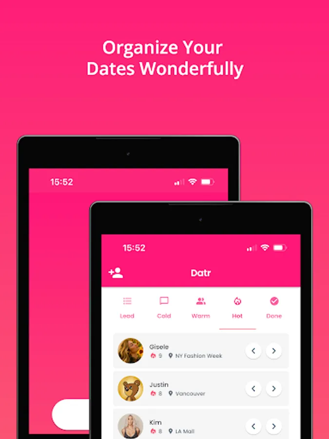 - Leads: With our handy-dandy date organizer, you can finally keep all of your love interests in one place. No more mixing up names, times, and places - unless that's your thing, we don't judge! Yes, you can organize all your leads in one place. It's like a CRM, for dates.