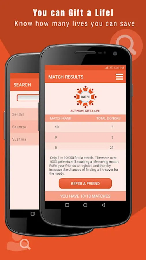 It also gives an insight into the registry's functioning. Donors may add or refer more potential donors to the registry through this App. This will in turn help in increasing the probability of finding more life-savers.