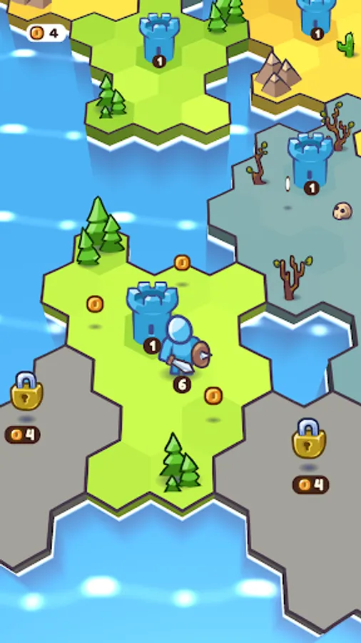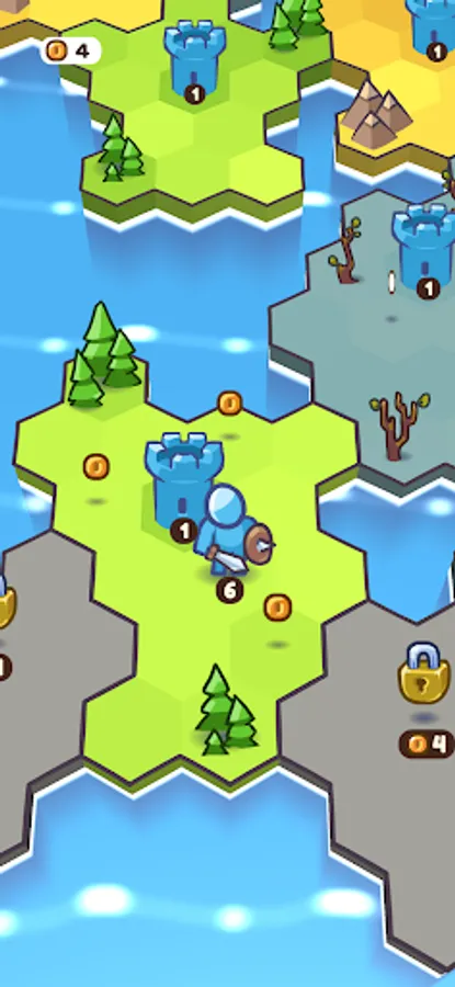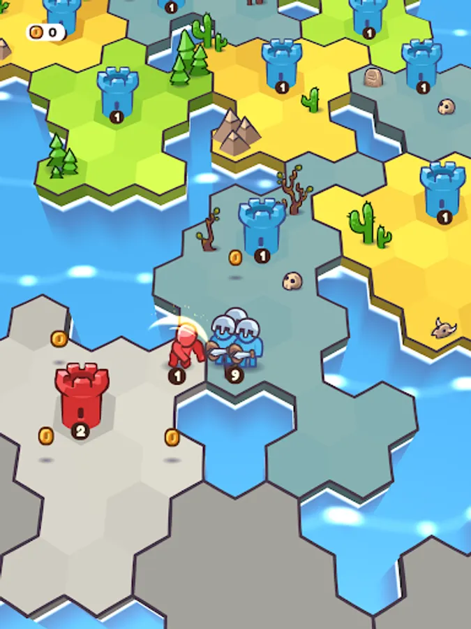 Explore territories to find neutral units and attach them to you, improve your character and capture new territories to become a ruler of the world.