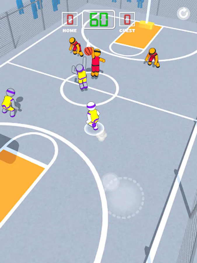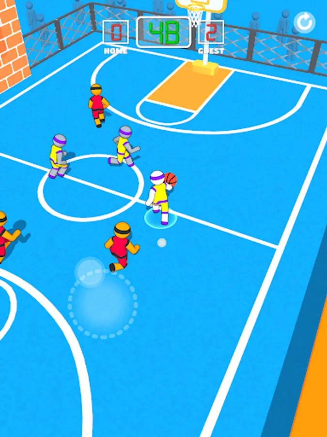In this casual game you will engage in fun fast paced 2x2 PvP street basketball matches. It's your team against other player's team, go grab the ball and score some 3 pointers!